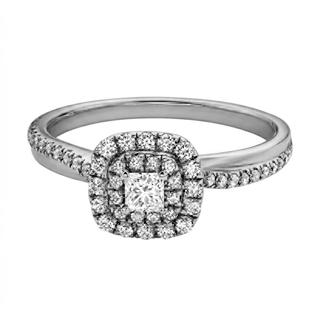 Halo diamond engagement rings are designed to maximize brilliance and visual impact, featuring a center stone surrounded by a circle—or “halo”—of smaller diamonds. This setting enhances the overall sparkle while making the center diamond appear larger and more radiant. Known for their glamorous and eye-catching appeal, halo rings can be crafted in a variety of styles, from classic round halos to more modern or vintage-inspired shapes. Whether paired with a simple band or accented with additional diamonds, halo engagement rings offer a luxurious look that beautifully combines elegance and brilliance.